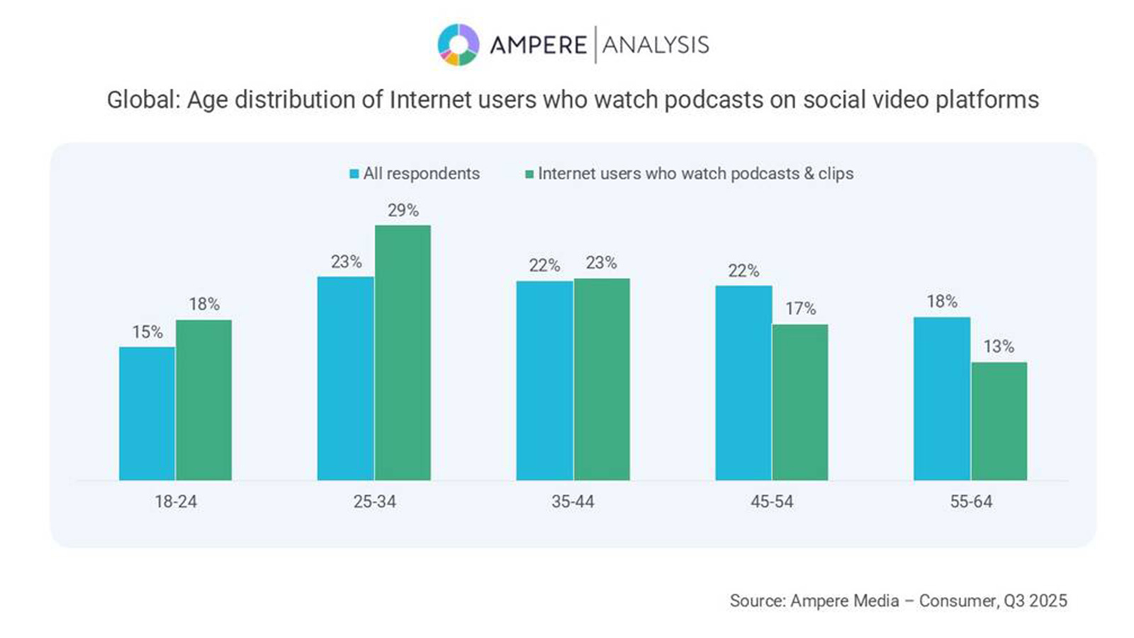 Ampere Analysis asegura que los videopodcasts se están consolidando rápidamente como una forma mainstream de entretenimiento en video, con uno de cada cinco usuarios de internet viéndolos ya en plataformas sociales.